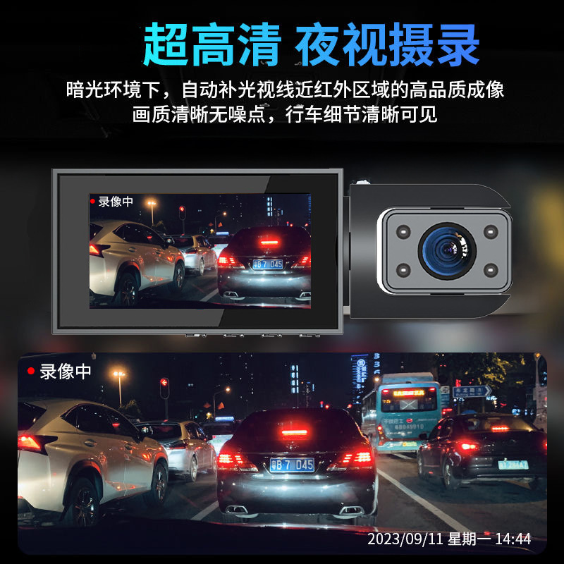 跨境爆款行车记录仪 三录高清1080P夜视广角 三镜头车载记录