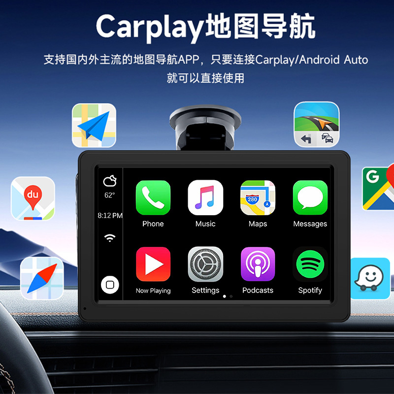 跨境高清7寸便捷式无线carplay车载GPS导航仪车载FM播放器记录仪