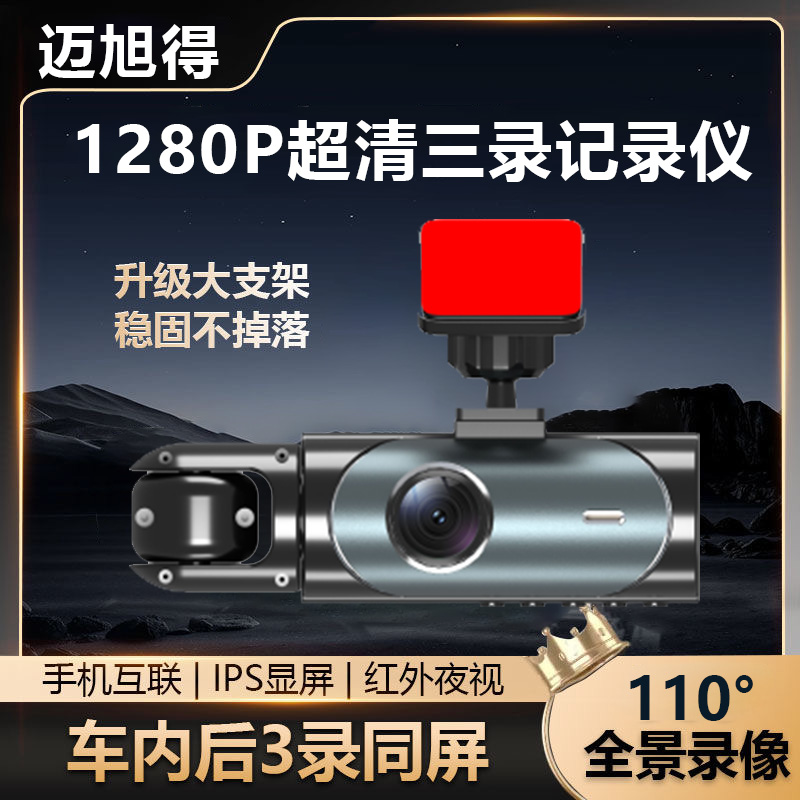 跨境爆款行车记录仪 三录高清1080P夜视广角 三镜头车载记录