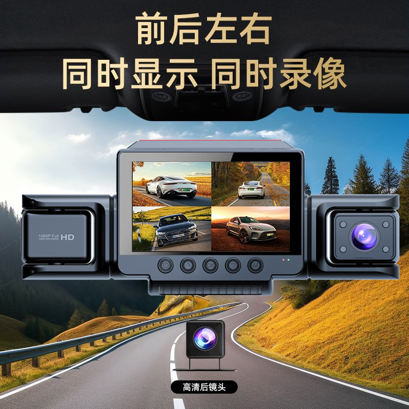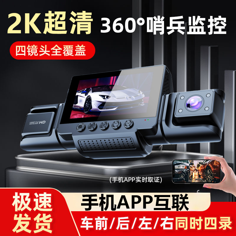 热销款4镜头记录仪WIFI手机互联1080P高清行车记录仪2K四录