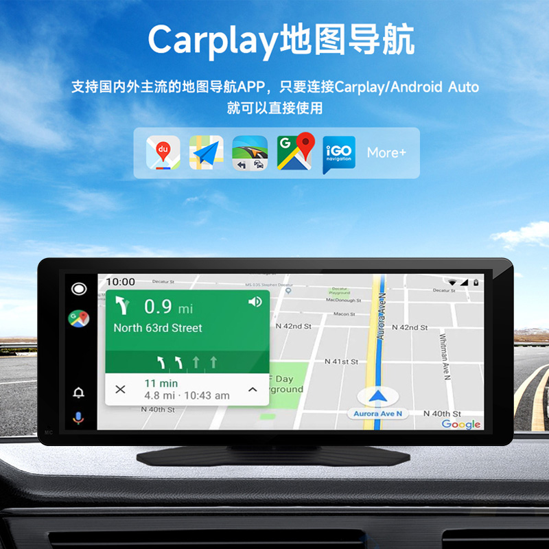 10.26寸无线苹果Carplay汽车行车记录仪 车载高清便携式导航